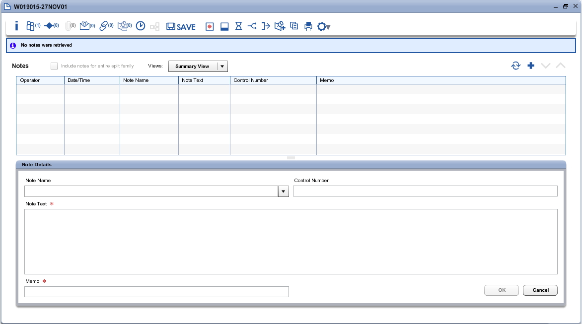XTRAC attaches the note to the open work item and creates a record of the note on the Notes Information page. XTRAC also adds a record of the note in the work item's history.